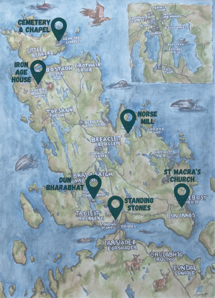 Further details about all the archaeological sites on this page can be found in the Bernera Museum.